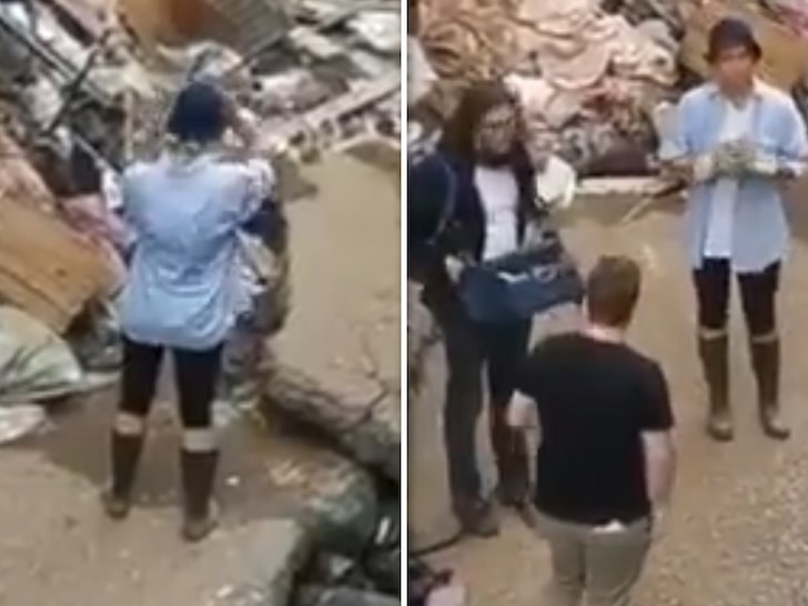Ohlen is seen during her report talking about the extensive damage caused by the flooding. She’s holding what appears to be a shovel and some gloves, presumably to telegraph they were the tools she used before going on the air.